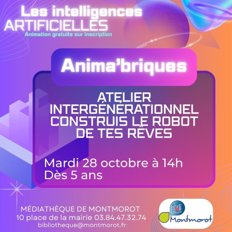 Construire, inventer, collaborer : cet atelier autour des briques de construction est une belle occasion de partager un moment créatif entre générations. Petits et grands pourront laisser libre cours à leur imagination et relever des défis collectifs.